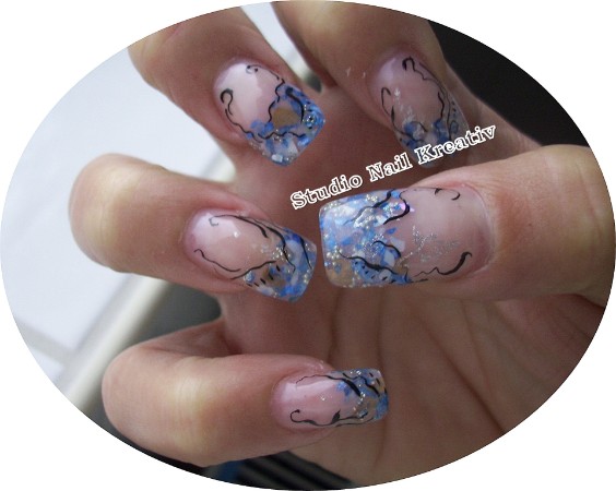 Schwarzes French mit kleinen roten Sternchen & ganz viel Glittzer